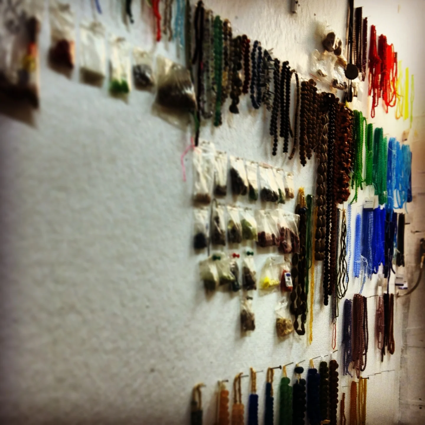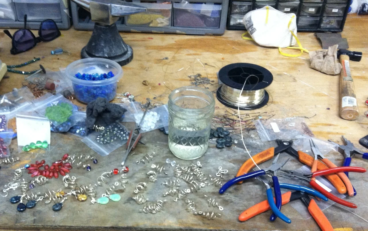 My studio is in Jamaica Plain, MA. It's a small space with beads and wire crowding the walls. For me, walking in feels like walking into a Candyland of Color.